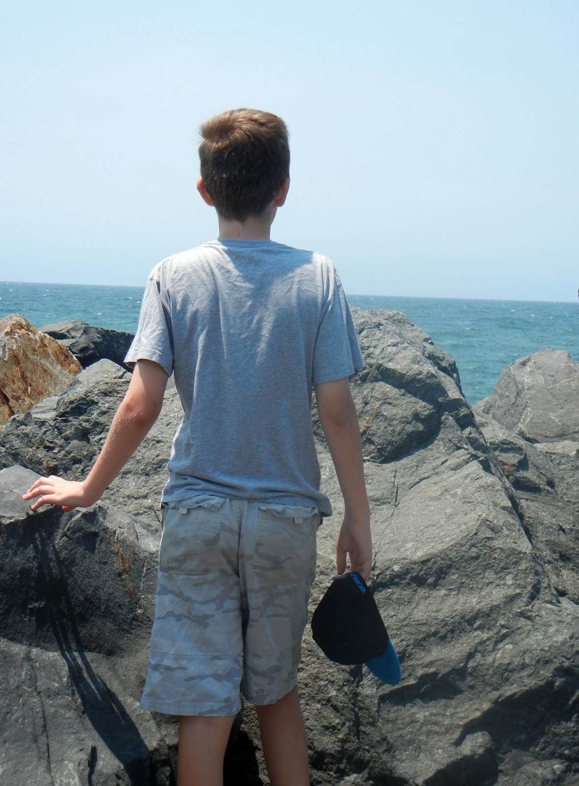 We all admired the ocean view at the end of the wall, and then we all turned around and walked back.