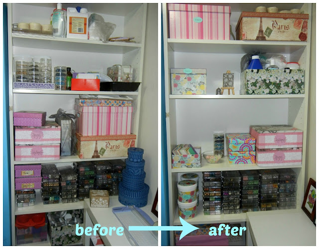 I find that taking before and after pics encourages me to continue and to get the job done. I also find it less daunting if I just focus on one area at a time. And as strange as it sounds, this time I am organising things into specific craft areas. I am putting all of the jewellery making stuff together, all of the paper together etc - logical, I know. But it is a first for me :)